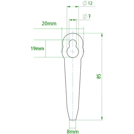 Size: length 84 mm, width 20 mm, large hole diameter 12 mm, small hole diameter 7 mm.