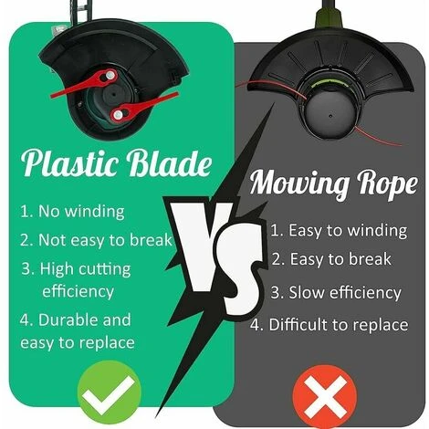 - 【Quality & Durable materials】: The cordless strimmer blade is made of premium ABS material, durable, flexible, odorless, not easy to break and good stability, can be used for a long time. A must-have accessory for garden mowers.