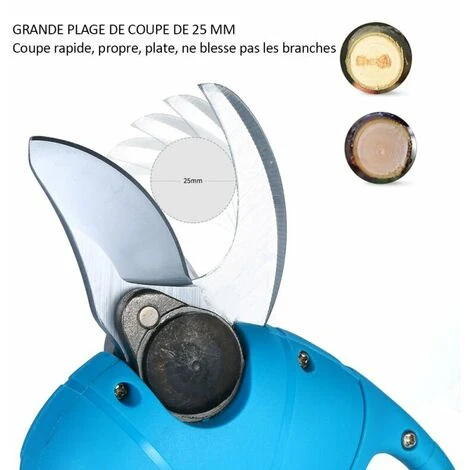 2. [ High Performance ] — Adopt special SK5 steel blade and high quality brushless motor, it is extremely sharp and durable, which actually can cut branches with a maximum diameter of 25mm , increase your pruning efficiency by 300% of traditional scissors.