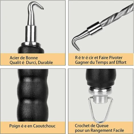 2 Pack Wire Twister Hook for Rebar, Concrete Metal Twists Fence Strapping Tools Semi-Automatic Design These rebar tie tools can hold the bars together easily and reduce repetitive actions, good tools to save your effort and improve your working efficiency. Easy Pull Mechanism Simply connect the hook to the rebar ties and simply pull to complete the task. Save time with this rather than using pliers to twist each wire. The additional hanging hole at the end allows for easy storage on the pegboard. 2 Styles Rebar Tools You will get 2 wire twist tools, including curved hook wire twist tool and straight wire twist tool, different style to meet your needs, bringing convenience to your your life. Specification Material: Steel Color: Black Length: Approx. 30.5cm / 12.01in Diameter: Approx. 2.8cm / 1.1in Quantity: 2 Pcs Package Content 2 x Wire Twist Twister (Curved and Straight Hook)
