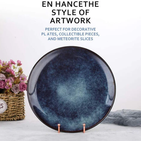 2.【PERFECT FOR STABILITY】: Sturdy, level and well constructed platter stands. Display your arts in stand with nicely lean angle. This dish stand style keeps plate closer to surface without sliding and tipping over, ensures your collections safe and at the focal point.