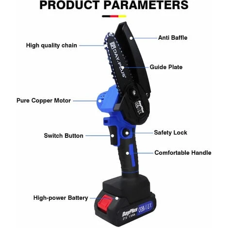 – Rechargeable electric chain saw, light and portable, long battery life, no damage to the bark.