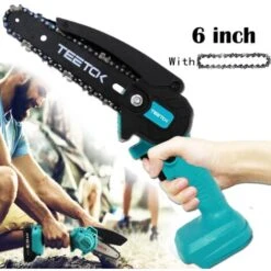 【6 Inch Cordless Mini Chainsaw 】Lightweight, comfortable non-slip grip, easy to control. Portable and cordless design, it can be easily used with one hand.