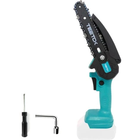 【Ergonomics Design】TEETOK Mini Cordless Chainsaw adopts an integrated guide plate, which dissipates heat quickly and is highly resistant to falling and abrasion. The ergonomic non-slip handle fits in the hand and feels very comfortable.