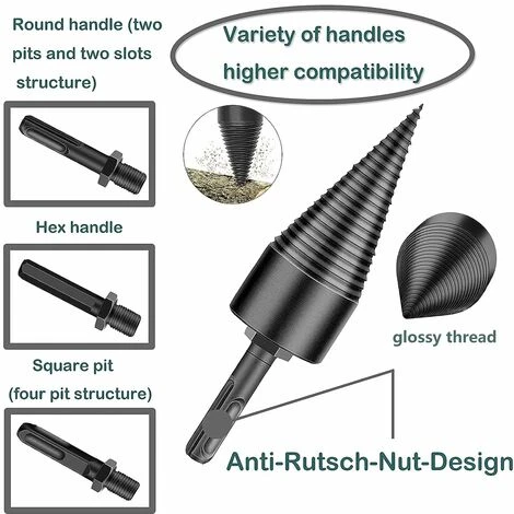 Unique design: unique geometric wood bean, replaceable drill of the split type is easy to use, with thread, pointed and non -slip groove design, can reduce friction, to avoid shift and improve the efficiency. It has 3 types of handles, which can be used with most wooden splitters.