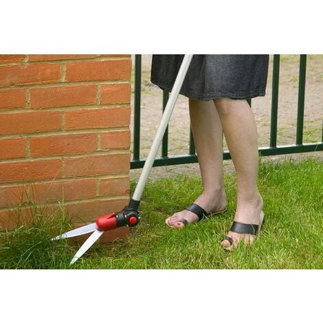 No need for over reaching or bending. You can walk along the edge of your lawn and neatly trim it using the trigger at the end of the long handle. Rotates through 180 degrees. You can transform from lawn to edging shear in one easy movement – simply hold the head and twist. For trimming out of reach growth simply press the large button on the side and swivel upwards. Operated with a simple trigger action with side catch to lock the blades in the closed position. These lightweight shears have aluminium alloy handle, allowing use over extended periods of time without tiring. Excellent and simple way to maintain your garden.