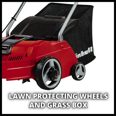 The GC-SA 1231/1 electric scarifier/aerator, is a powerful and reliable combined tool and does a good job in aerating and scarifying small to middle size plots for a healthy lawn care. With 8 high-quality double blades, the ball bearing mounted cutting roller removes weeds and moss with their roots thoroughly. The also ball bearing mounted aerator roller allows a professional soil aeration with 45 claws. For that purpose, the powerful inverse-speed motor with 1,200W delivers a strong torque for continuous working progress and consistently good results. The robust plastic housing is a guarantor for durability and the 28 litres collector bag is included. Recommended for lawns up to ca. 300m².