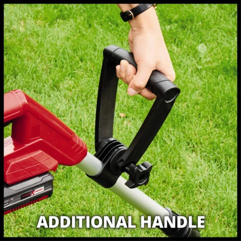 The Einhell GC-CT 18/24 Li cordless grass trimmer makes short work of tidying up lawn edges or small patches of grass where your mower can’t reach. The grass trimmer is equipped with a flower guard, which provides effective protection against damage for flowers and ornamental plants. The product is supplied complete with 20 plastic cutting blades that can be changed quickly and easily when worn out without using any tools. The adjustable handle allows for a comfortable working position. Supplied complete with 1x 18V 2.0Ah battery and charger that is compatible with all Einhell Power X-Change batteries and tools.
