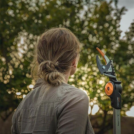 The Fiskars PowerGear™ X Tree Pruner (UPX82) available at ITS features an ingenious, power-boosting mechanism for cutting fresh wood up to Ø 32 mm with a reach of 3,5 meters. Experience easier cuts with PowerGear™ X technology, allowing for effortless and exact pruning without the need for a ladder, bending or straining knees. PowerGear X™ tree pruners have an orange cutting support for improved visibility and a cutting angle that can be adjusted up to 230°. Durable, high-quality steel blades have friction-reducing PTFE coating that lasts longer, even under heavy use. The shaft is made of lightweight, weather-resistant aluminium with an ergonomic SoftGrip™ handle for comfort, control and a non-slip hold.