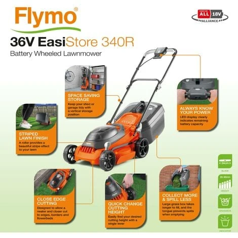 Be the first to review “Flymo 36V EasiStore 340R Cordless Rotary Lawnmower 2.0 KIT” Cancel reply