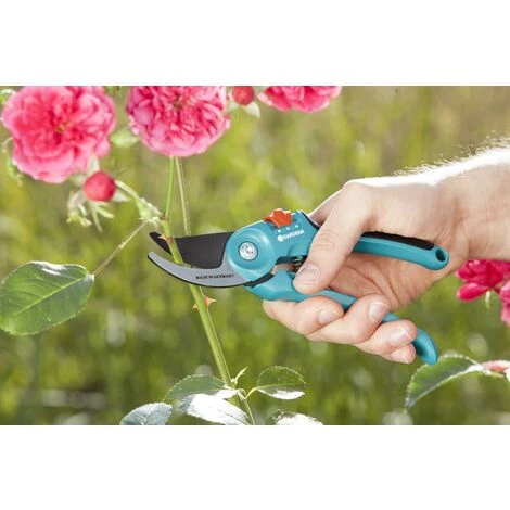 Perfect for cutting flowers, green wood and young shoots the GARDENA Garden Secateurs are made with high quality precision ground blades – for a clean, healthy cut. With a cutting diameter of 22mm, the Bypass principle allows the blades to glide past each other. The ergonomically designed fibreglass reinforced handle make the Secateurs comfortable and practical to use. You can also adjust the secateurs to suit the size of your hand. The single hand locking feature allows you to safely store your secateurs. The secateurs come with a 25 year warranty.