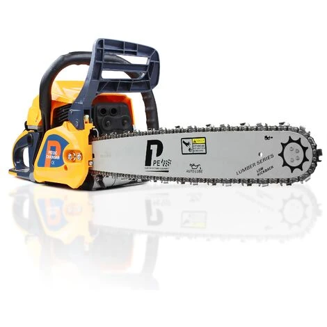 P1 20 Easy-Start Petrol Chainsaw – 62cc This powerful 20 Easy-Start Petrol Chainsaw is perfect for tougher sawing assignments including felling large trees. The 20 inch bar can achieve 18m/s of chain speed which will easily slice through all types of trees. The anti-kickback safety brake can stop the chain if an accident occurs and the chain catcher will shorten any broken chains which will prevent injuries. The chain is automatically lubricated while in use. Chain tensioning is incredibly easy and can be performed with the front mounted tensioner. Features a anti-vibration soft-grip handle to ensure comfort during long periods of use. 13/40 chain pitch size. Easy-start motor makes starting the chainsaw effortless. The Hyundai 2-stroke Petrol Euro V engine runs on unleaded petrol or semi-synthetic 2-stroke oil. Great power to weight ratio. Low fuel consumption and emissions. Includes a storage bag for easy carry. What’s in the box? 1 x P1 20 Easy-Start Petrol Chainsaw – 62cc 2 x 20