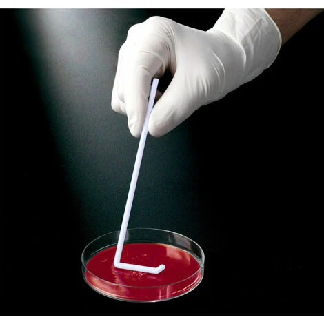 - Base length allows spreading of liquid samples over a Petri dish and helps