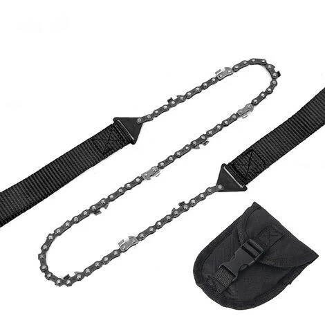 Portable Survival Chainsaw – Features two-way self-cleaning cutting teeth, made of industrial grade heat-treated steel, easily rips wood while cutting in two strokes!