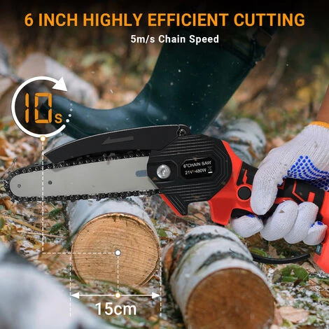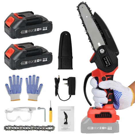 - Perfect Choice – Kit contains 1x Mini Chainsaw,1x 2000mAH Batteries, 2x Chain, 1x Charger,1x Gloves,1x Instruction manual and 1x Tool Kit.