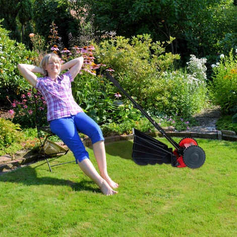 Save time and money with the hand mower as well as having to deal with cables and wall plugs. The mechanical lawnmower operates via hand push. This is great for the environment and doesn’t cause any noise. Furthermore, you are able to set the grass height with the 3 settings available. Cut grass is collected in the grass box. And this is easy to remove from the mower for emptying. The movable handle of the hand lawn mower is padded for easy gripping and handling.