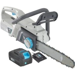 Tool-free tightening system provides quick and simple chain fitting and adjustment. DC brush motor design offers up to 70% less vibration and lightweight design for comfortable cutting even during prolonged use