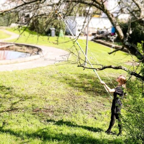 - 2-wheel pulley: Also, thanks to the 2-wheel pulley, the telescopic pruning shears offer you better power transmission and good grip thanks to reliable, stable pull ropes with a plastic handle. This saves the effort and also stress on your hands under long-term loads.