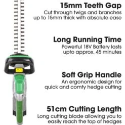 Gracious Gardens Cordless Hedge Trimmer Cutter 18V With 1 Battery And 1 Charger