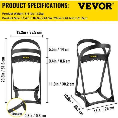 cm, and the height is 20.3″/51.6 cm, fit for woods up to 8″/20 cm